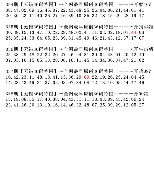 | 红波 | 01 02 07 08 12 13 18 19 23 24 29 30 34 35 40 45 46 |