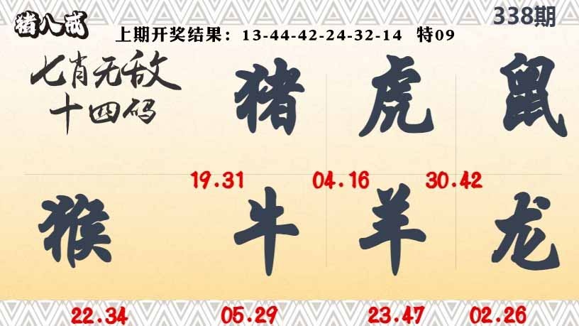 | 337期⑦肖 | 马蛇虎猪狗鸡猴 | 开:鸡09准 |