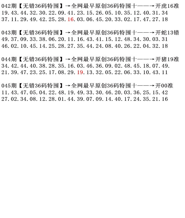 | 042期10码 | 24.36.25.39.33.35.19.30.16.20 | 开:虎16准 |
